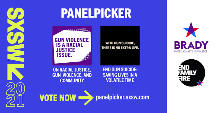 Please take a moment to vote for Brady to present about solutions to gun violence at the 2021 SXSW Conference!